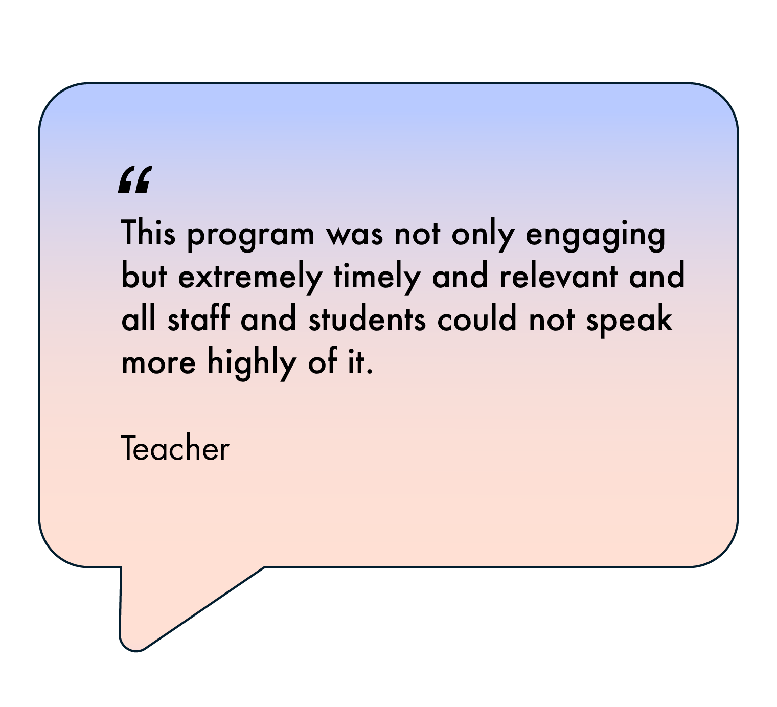 A free, digital-learning platform and face-to-face program that inspires students in Grades 3 to 6 to be a Respect Champion. The platform features AFL and AFLW player videos, interactive activities and discussion prompts across four modules. Created to empower students to build knowledge and skills that lead to a brighter, kinder, more connected future.